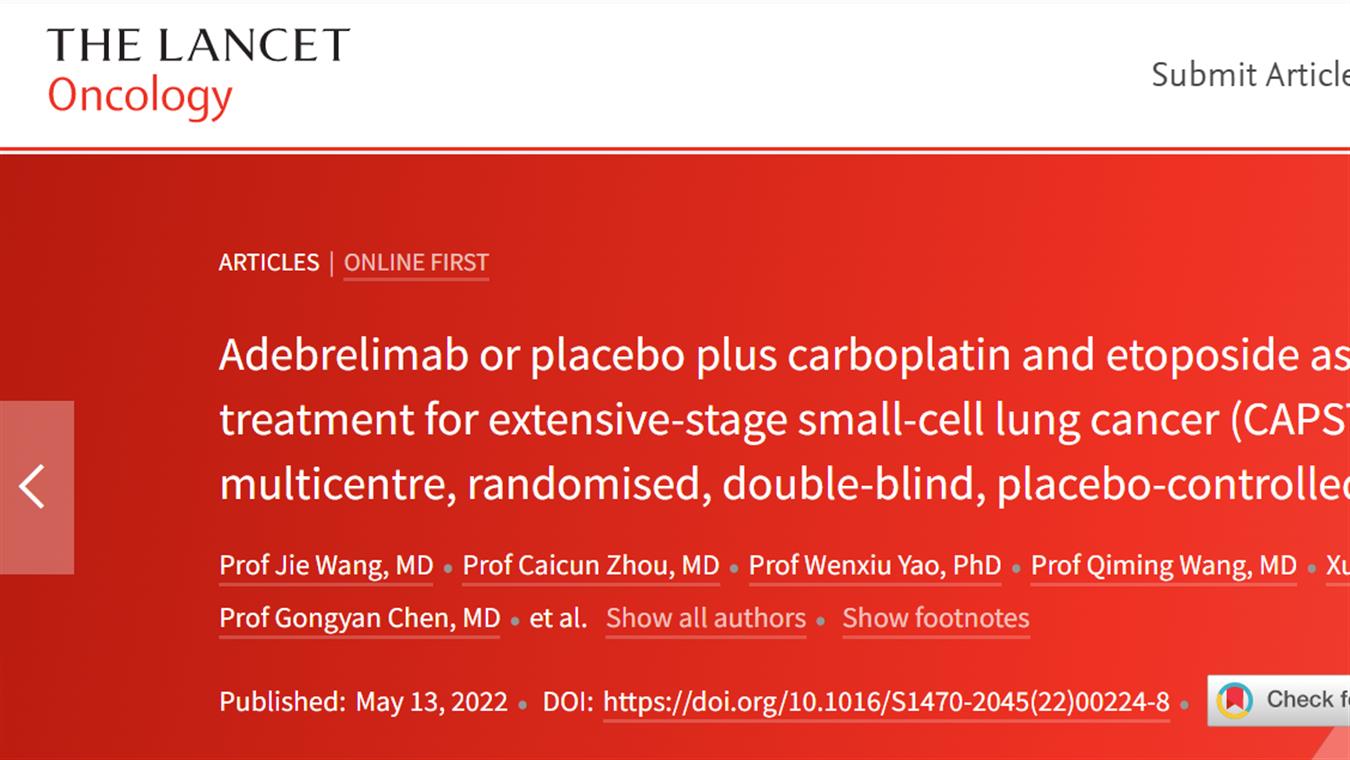 304am永利卡瑞利珠单抗联合阿帕替尼最新研究成果荣登《柳叶刀·肿瘤》